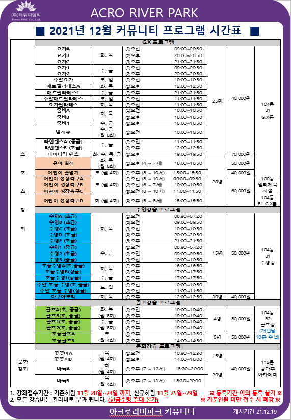 ※12월부터 수영 G.X강좌 정상적으로 진행 합니다.